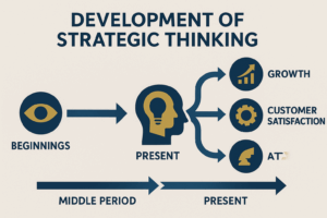 นับตั้งแต่ยุคปฏิวัติอุตสาหกรรมเป็นต้นมา โลกทางธุรกิจและด้านอื่นๆได้มีการปรับตัวเพื่อให้ตนเองมีความยั่งยืนอยู่ได้ตลอดเวลา การพัฒนาความคิดเชิงกลยุทธ์จึงเป็นสิ่งสำคัญที่ผู้ปฏิบัติ ตลอดจนผู้บริหารองค์กรไม่ควรมองข้ามและต้องพัฒนาตนเองอยู่ตลอดเวลา แต่อย่างไรก็ตาม พัฒนาทางความคิดด้านกลยุทธ์นั้น จะต้องอาศัยประสบการณ์และกระบวนการในการพัฒนาตนเองอยู่ตลอดเวลา ภายใต้หลักการเรียนรู้ทางประสบการณ์ของผู้คนในยุคนั้นๆ สำหรับในหัวข้อนี้ ผู้เรียบเรียงขอนำเสนอรายละเอียดเพื่อให้เห็นที่มาที่ไปของพัฒนาการทางความคิดด้านกลยุทธ์...